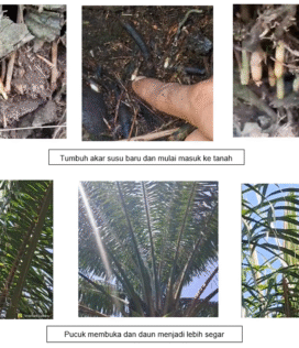 Dengan 2x aplikasi selama 2 minggu, hasilnya pada seminggu pertama setelah aplikasi ke-1, jamur Ganoderma mengering rontok, keluar jamur dalam bentuk serbuk dari batang pohon serta munculnya 1 daun baru pada pucuk pohon sawit. Pada seminggu kedua setelah aplikasi ke-2, janur Ganoderma pada pohon rontok serta hancur, tampak pohon menjadi bersih dari Ganoderma, serta pada pohon terlihat gulma yang menempel mati, tumbuh daun baru yang semula 1 menjadi 3.